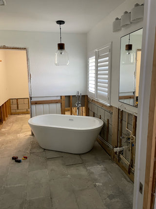 Swipe to see the before and after of this owners suite bathroom renovation.