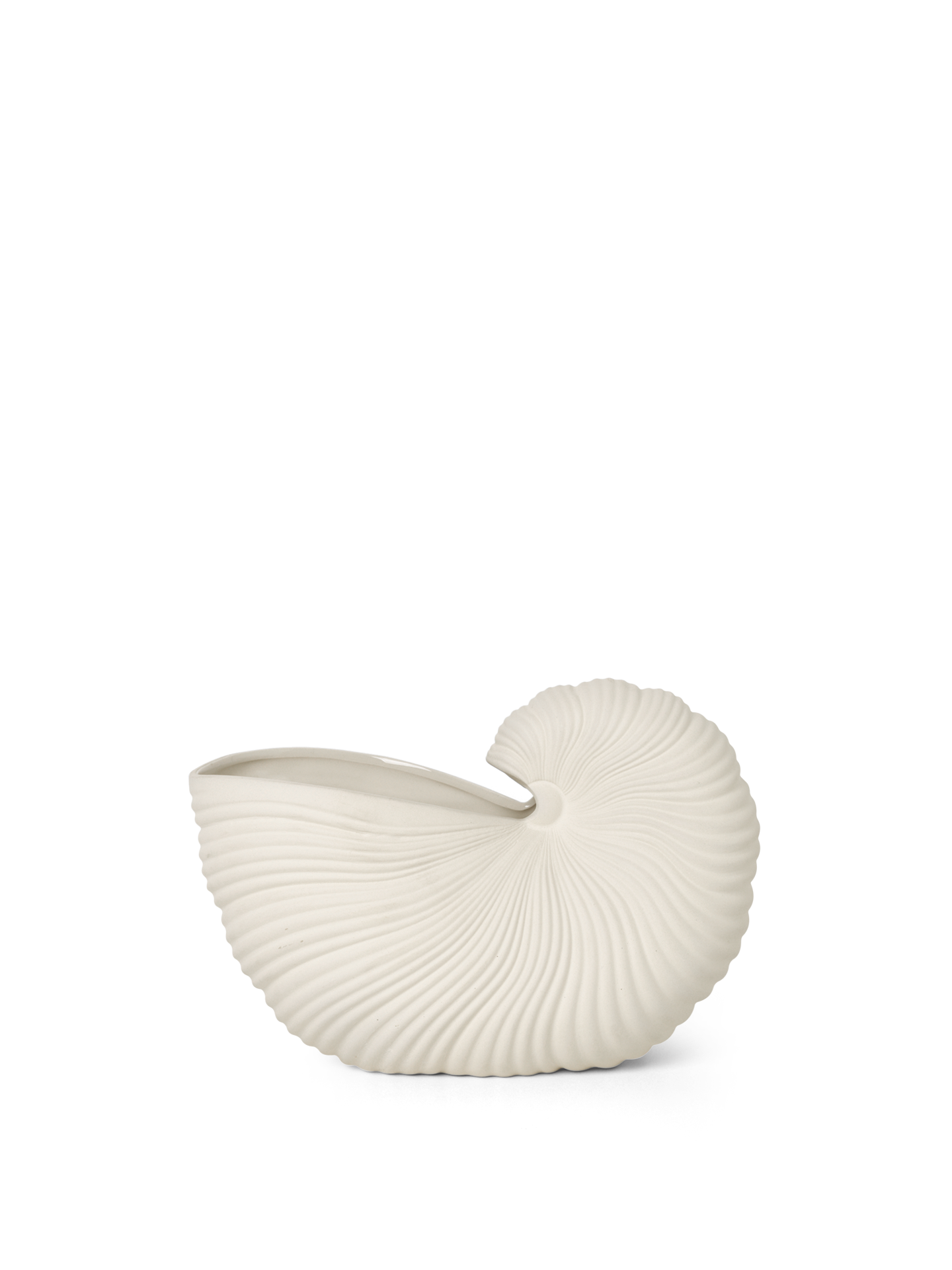 Filled with your favourite flowers or by its own, this pot shaped like a nautilus shell merges natural shapes with contemporary design. With a matte outside and glazed inside, it adds delicate detail to any room, simple and sculptural all at once.